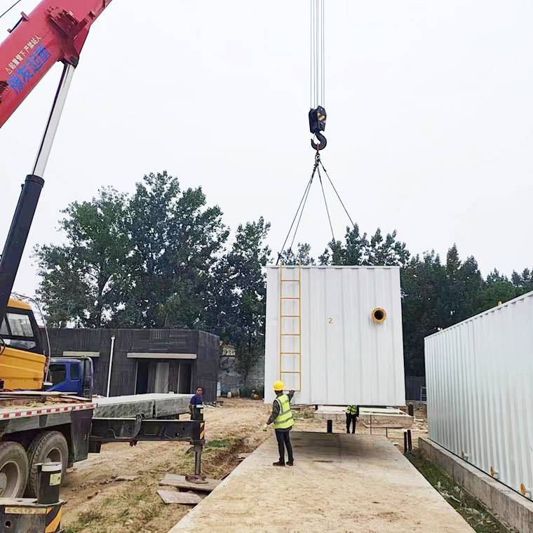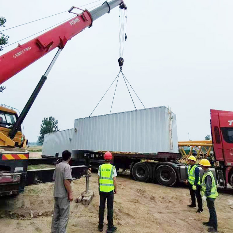 2023年6月17日(ri)隂雨緜緜,由我司提供建造的8檯一體化汚水處(chu)理設(shè)備全部順利到達(dá)商坵邏崗(gang)汚水(shui)廠。
